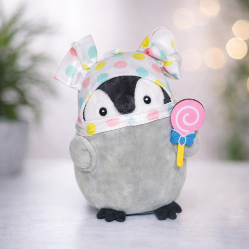 Милий малюк пінгвіна — це м’яка плюшева іграшка з творчим та незвичайним дизайном. Пінгвін зображений у образі маленького художника з беретом, палітрою та пензликом, що додає іграшці особливого шарму.