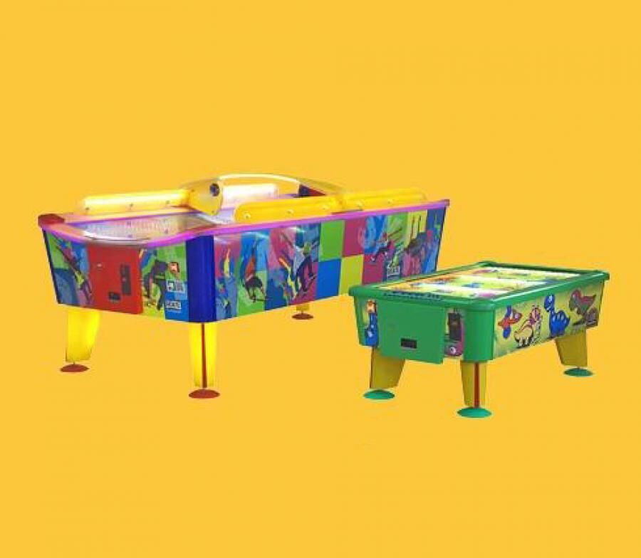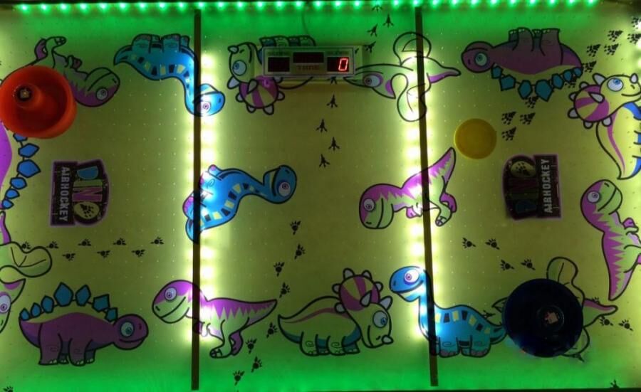 Аерохокей DINO XS створений спеціально для дітей, його забавний дизайн не залишає жодної дитини байдужою до цієї гри. Ніжки хокею підсвічуються звичайним чином, а ігрове поле столу – ультрафіолетовим світлом. Його відмінна риса – гра супроводжується веселими та дружніми звуковими та візуальними ефектами. Відображається на електронному табло рахунок, час до кінця гри та кредити. Гра розрахована на двох гравців. Каркас автомата виготовлений з вологостійкої фанери, а ігрове поле зроблено з полікарбонатної перфорованої плити. Виробником є польська компанія WIK.