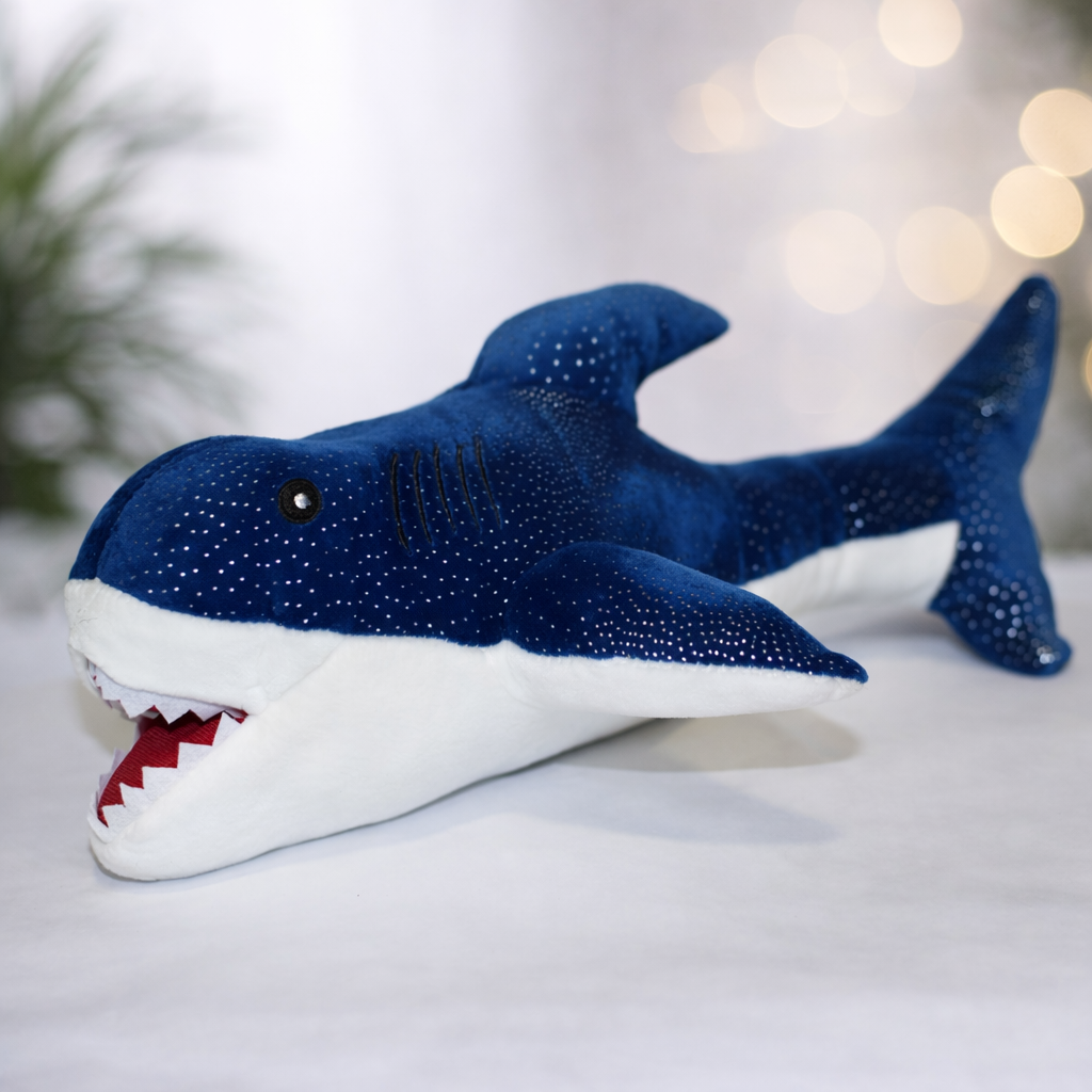 М’яка плюшева акула зоряного неба — стильна та незвичайна іграшка, яка привертає увагу своїм темно-синім забарвленням із зоряним візерунком. Такий дизайн нагадує нічне небо, що робить іграшку особливо оригінальною.