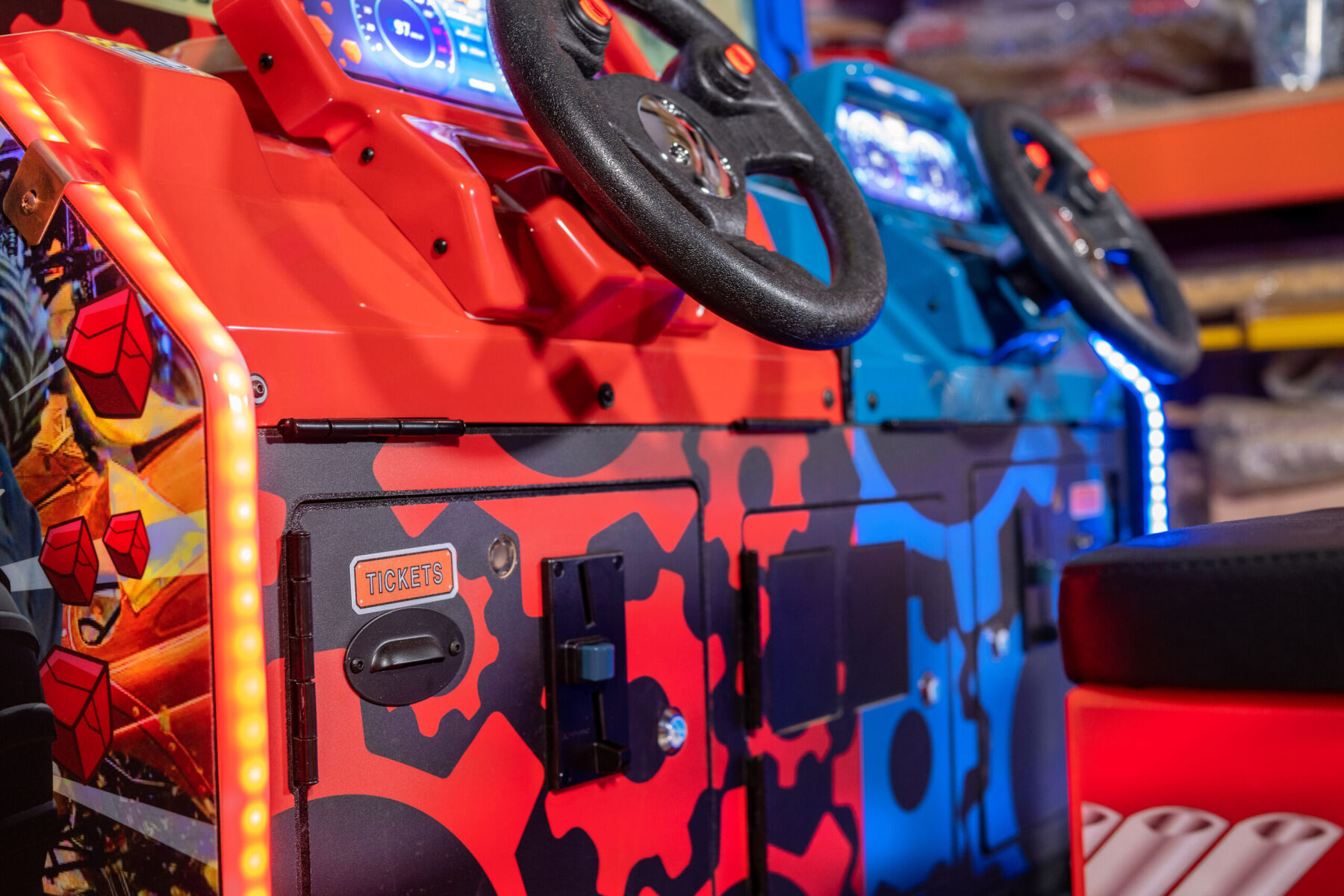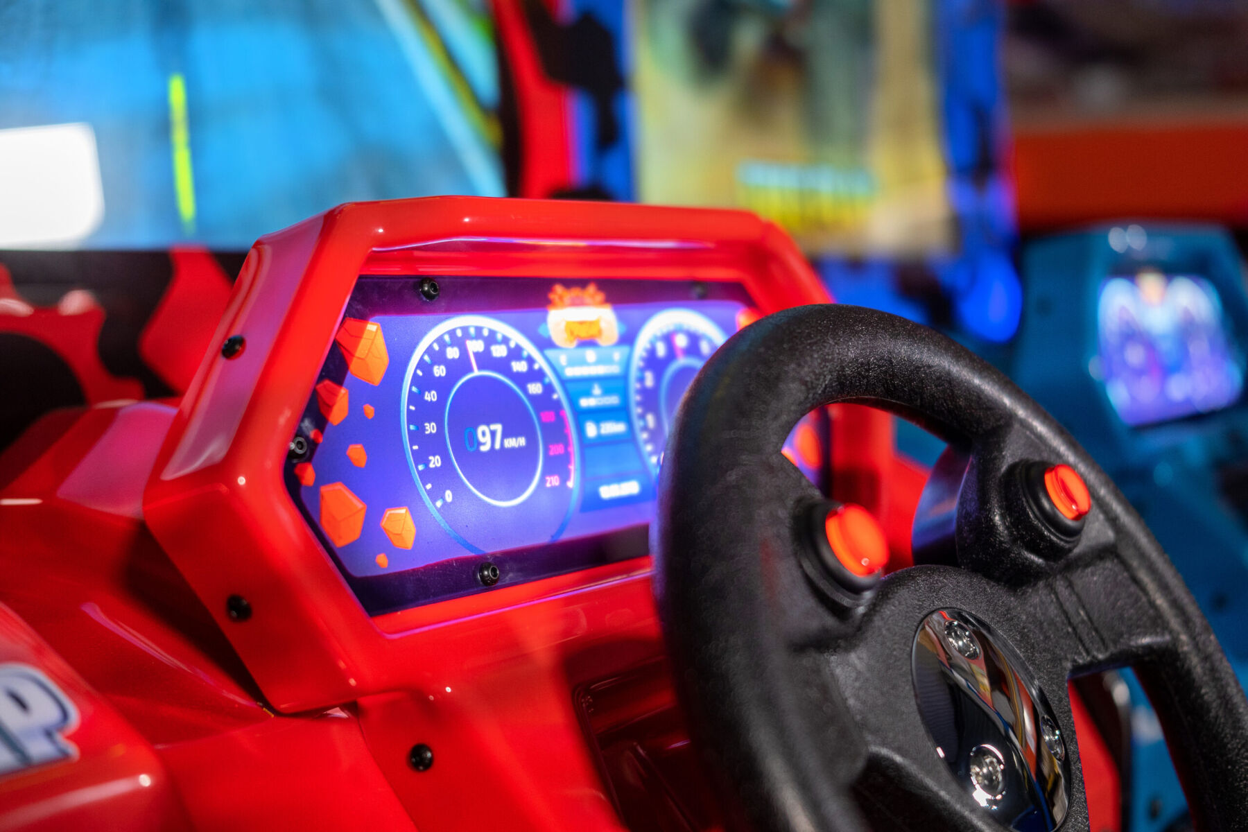 Кабінет автомата має ефектний дизайн із деталями монстр-трака, LED-підсвічуванням та двома ігровими станціями. Яскраві 32-дюймові HD-екрани роблять геймплей видовищним і привертають увагу відвідувачів.