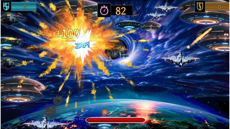 Гравці стріляють із бластерів, заробляючи очки за влучання в мішені також можлива командна гра.
