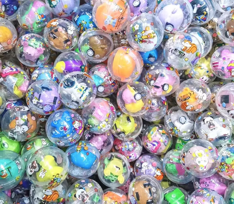 Вендингові капсули діаметром 50 мм у змішаному асортименті з різними іграшками та дизайнами.
