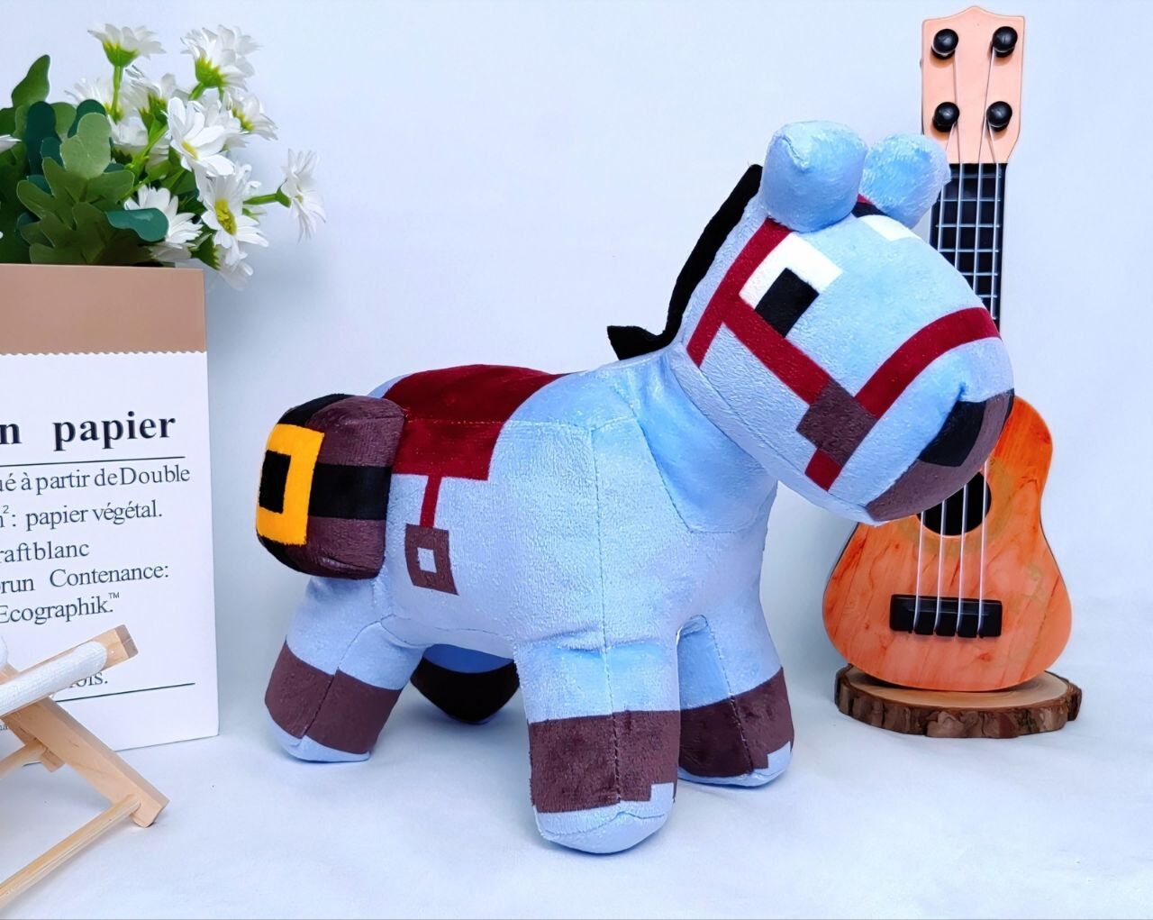 М’яка іграшка «Кінь Майнкрафт» розміром 8 дюймів — це стильна плюшева іграшка, виконана у впізнаваному піксельному дизайні, натхненному популярною грою Minecraft. Завдяки оригінальному вигляду іграшка особливо приваблює дітей та фанатів ігрової тематики.