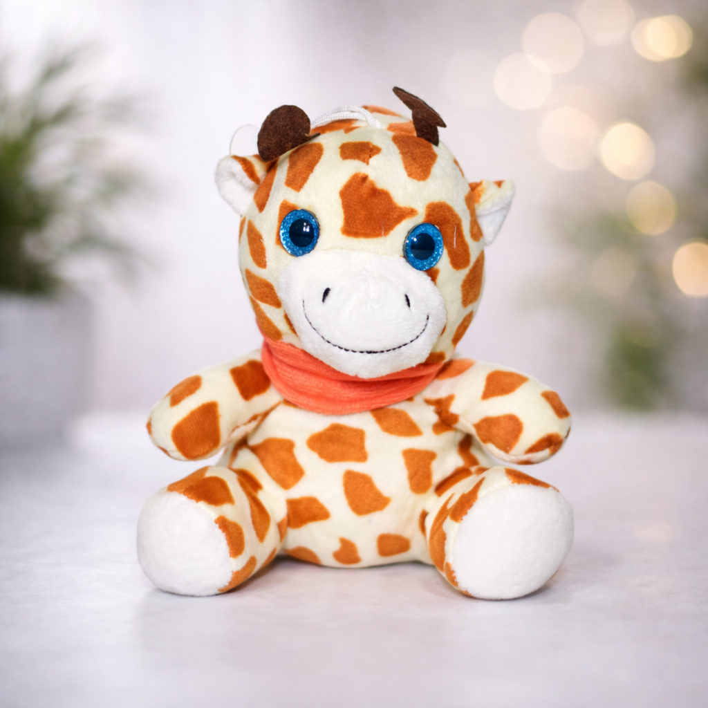 М’яка іграшка «Жираф з шарфом» розміром 7 дюймів — це мила плюшева іграшка з доброзичливим виразом та яскравим шарфом, який додає образу індивідуальності. Компактний розмір робить іграшку зручною для дитячих рук і підходящою для щоденних ігор.