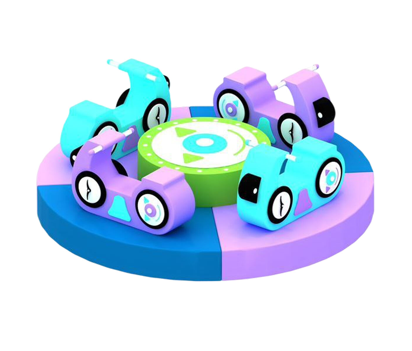 Ця яскрава м’яка карусель створена спеціально для дітей дошкільного віку. Завдяки зручним сидінням та плавному обертанню вона перетворює гру на веселу та безпечну активність, яка сприяє розвитку координації та сенсорного сприйняття.