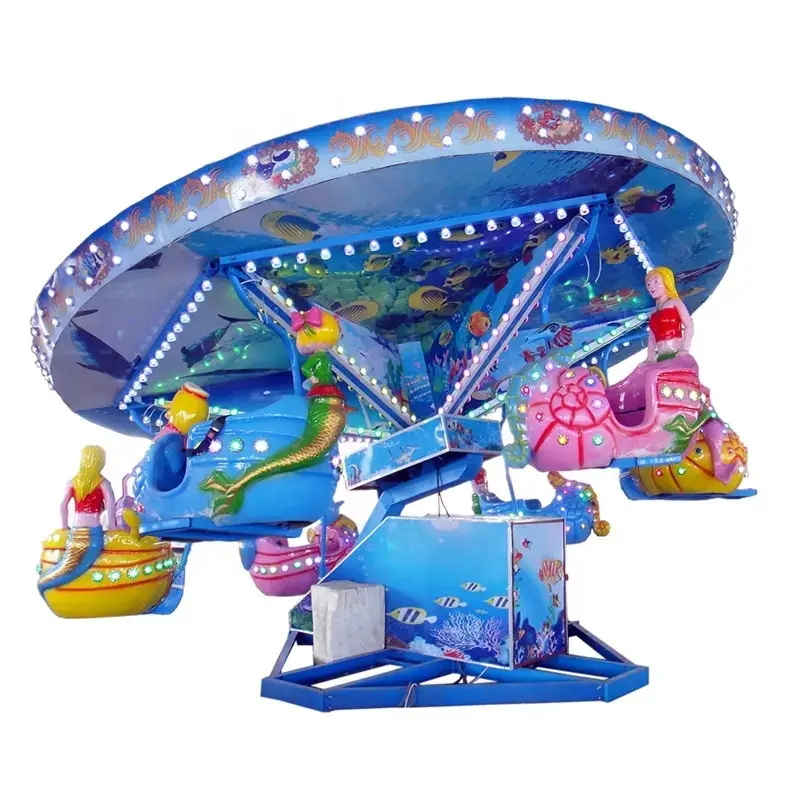 Ocean Walking Ride — це класичний сімейний атракціон типу літаючих крісел, відомий також як swing carousel або wave swinger, виконаний у яскравій морській тематиці. Завдяки простому, але ефектному руху атракціон залишається одним із найпопулярніших рішень для парків розваг і ярмарків.