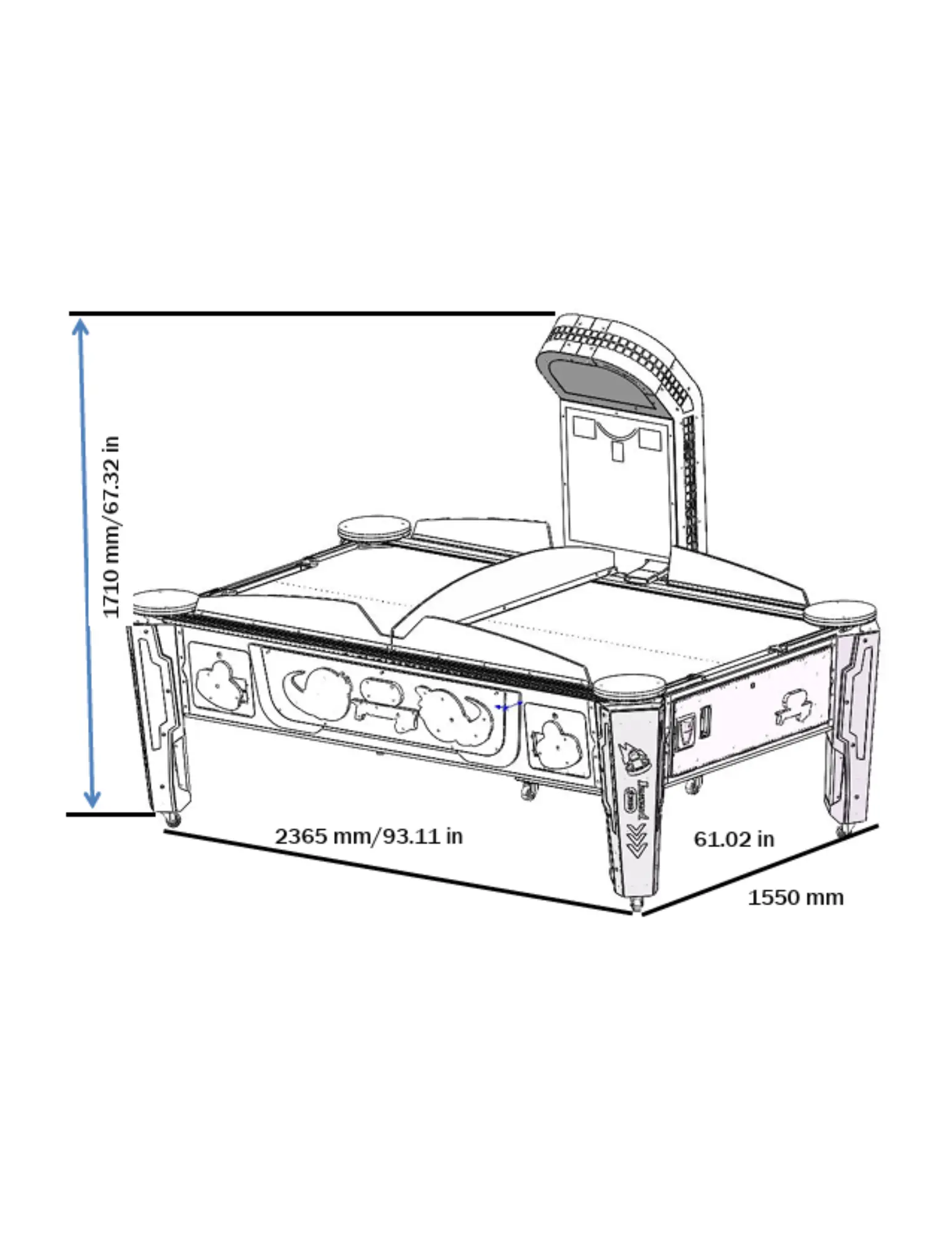 Стіл виготовлений із міцної PMMA-поверхні, яка забезпечує плавний рух шайби. Система автоматичного повернення шайб дозволяє грати без перерв, а цифрове табло показує результати гри в реальному часі.