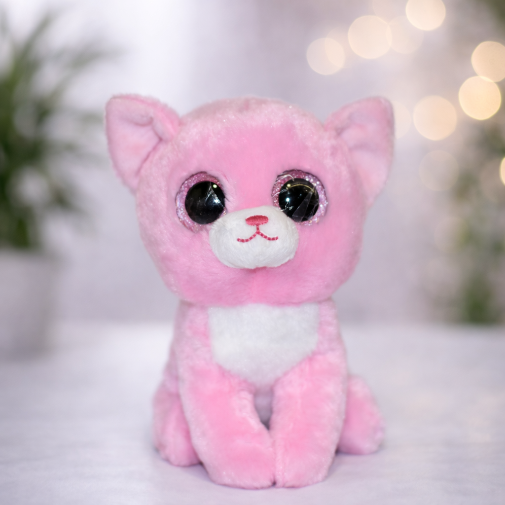 Рожеве великооке кошеня 8 дюймів — мила плюшева іграшка з великими блискучими очима та ніжним кольором. М’який матеріал робить її чудовим другом для дитини та гарним подарунком.