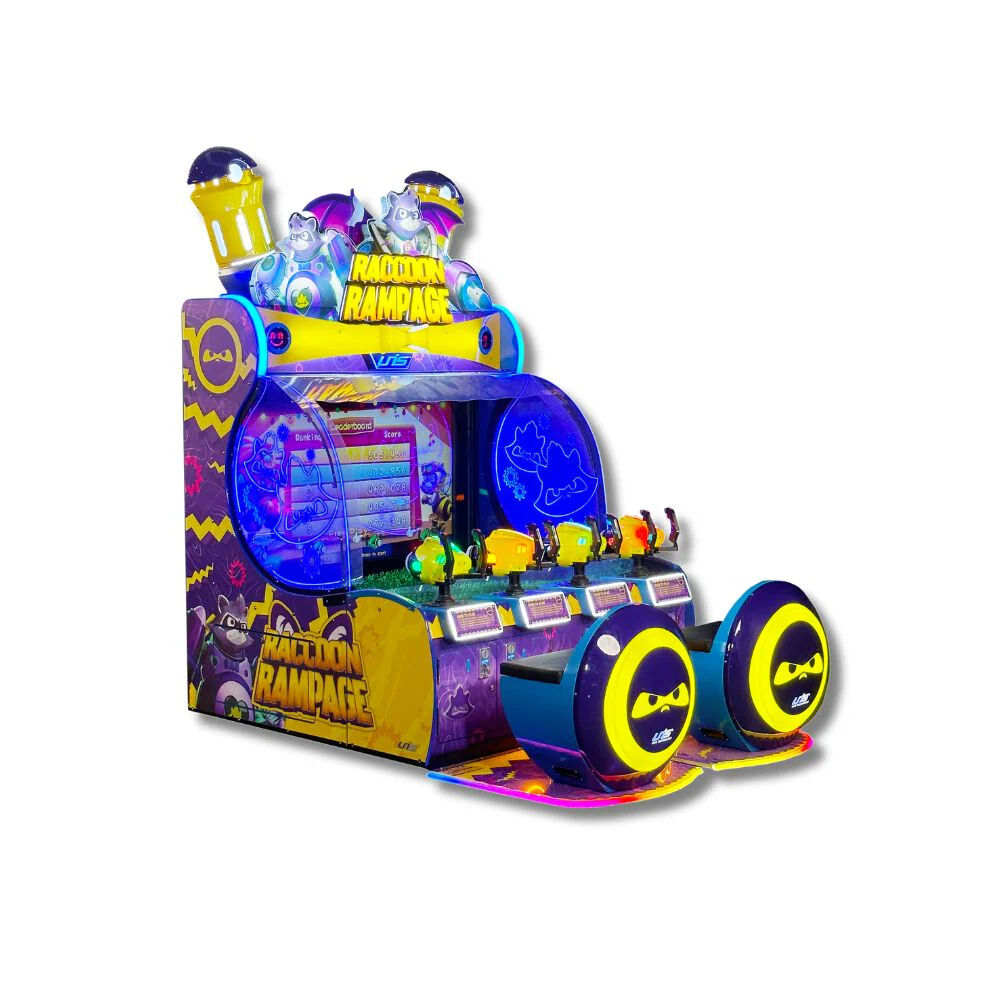 Raccoon Rampage — це захоплива аркадна гра у форматі water shooting, у якій до чотирьох гравців можуть одночасно брати участь у динамічних битвах. Гравці використовують водяні бластери з ефектом віддачі, щоб атакувати ворогів та проходити рівні.