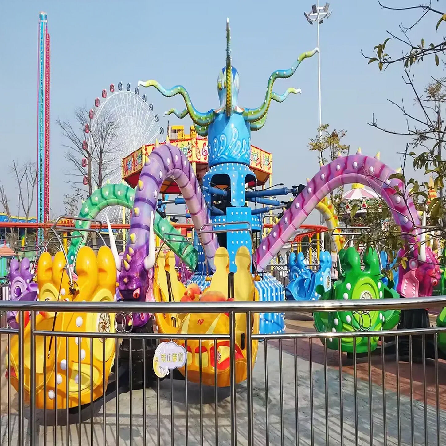 40 Seats Octopus Ride — це масштабний сімейний атракціон, створений для активного потоку відвідувачів і високої пропускної здатності. Завдяки великій місткості він ідеально підходить для парків розваг, ярмарків і туристичних локацій.