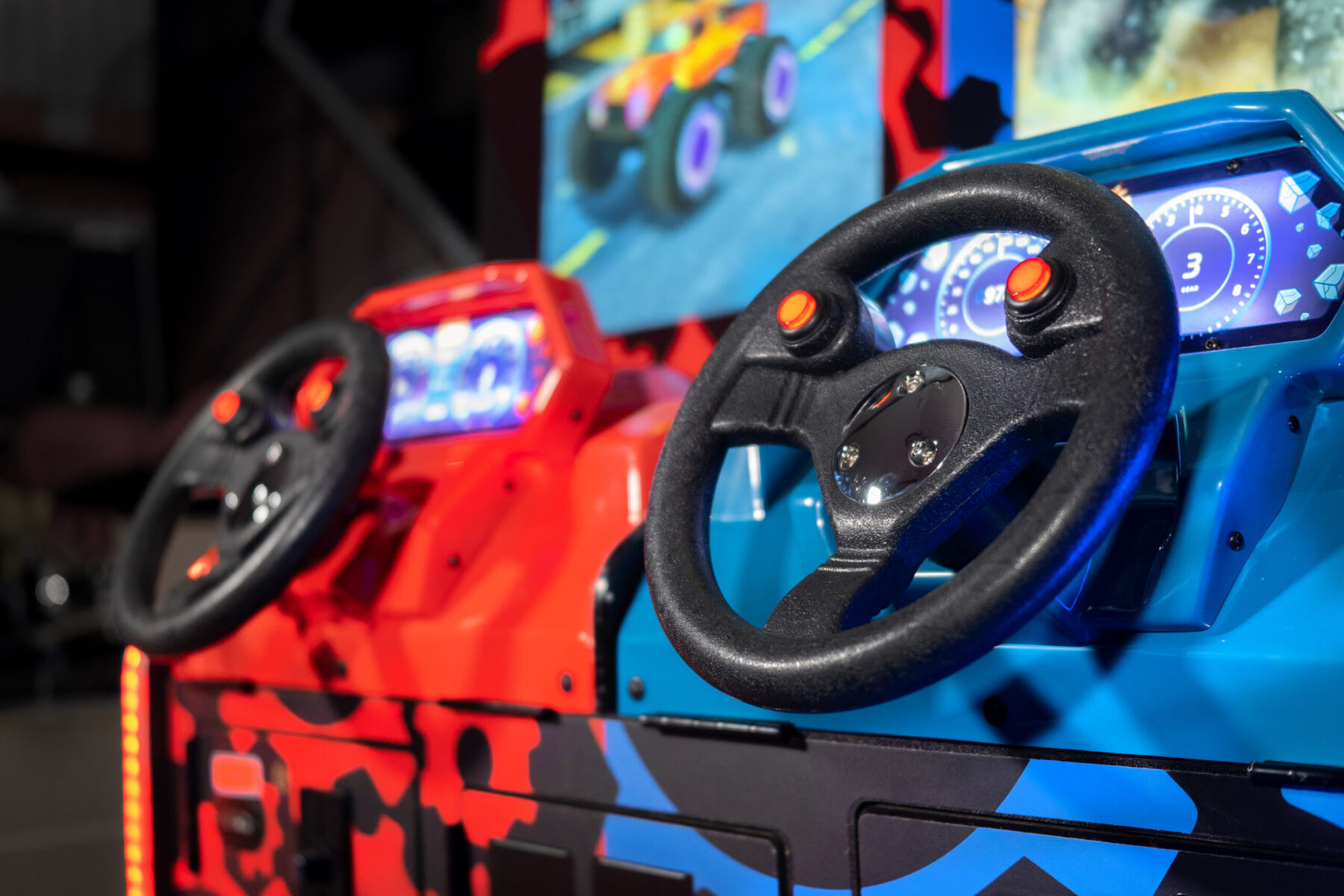 Кабінет автомата має ефектний дизайн із деталями монстр-трака, LED-підсвічуванням та двома ігровими станціями. Яскраві 32-дюймові HD-екрани роблять геймплей видовищним і привертають увагу відвідувачів.