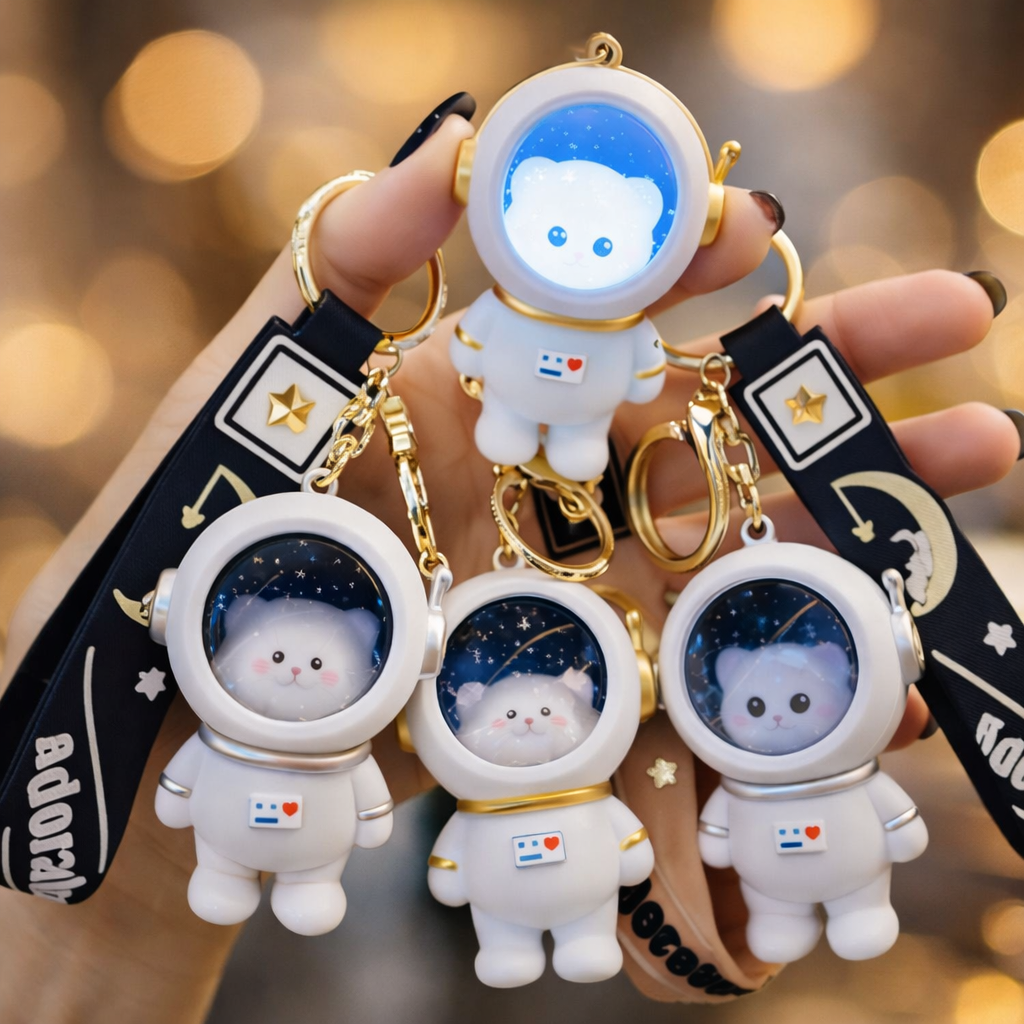Стильний брелок із милим ведмедиком-астронавтом та ефектом зоряного неба — яскравий аксесуар із атмосферним дизайном.