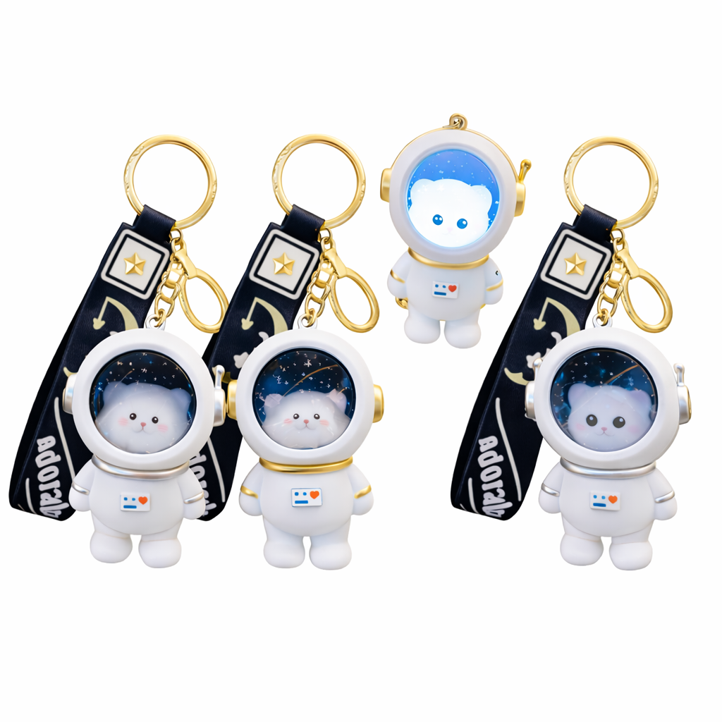 Брелок у вигляді ведмедика в скафандрі — це поєднання милого дизайну та космічної тематики. Усередині прозорого шолома створений ефект нічного неба із зірками, що додає виробу глибини та особливої атмосфери.