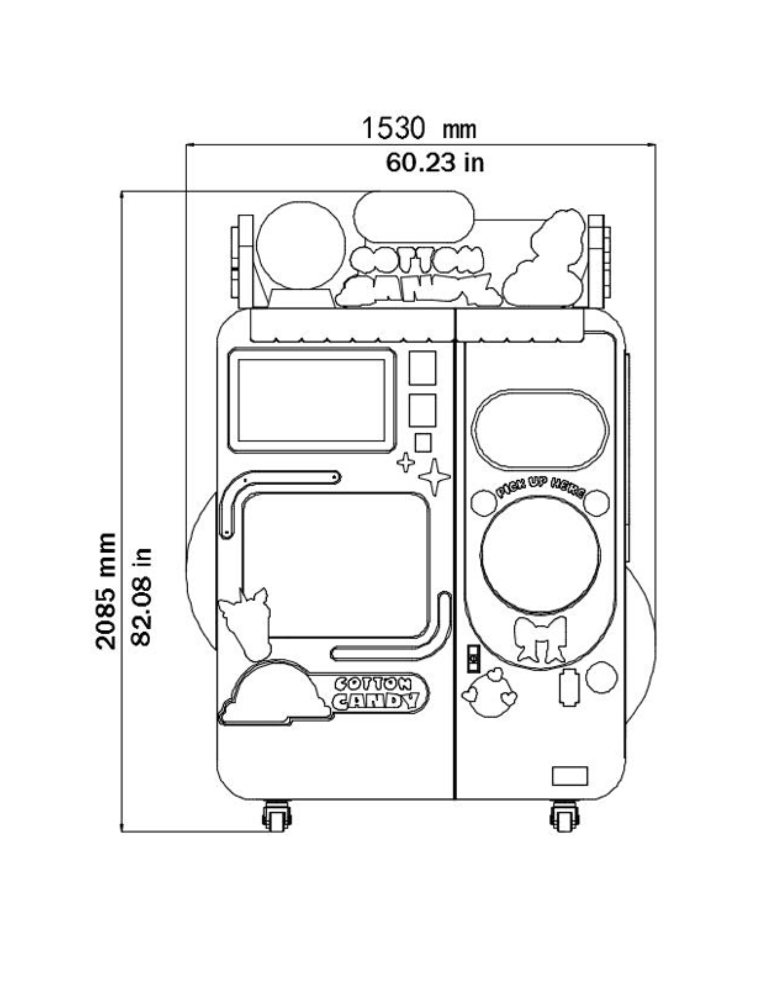 Cotton Candy — це сучасний вендинговий автомат, який за допомогою роботизованої технології створює яскраву солодку вату різних форм і кольорів. Машина перетворює звичайний процес приготування десерту на справжнє інтерактивне шоу, яке привертає увагу відвідувачів.