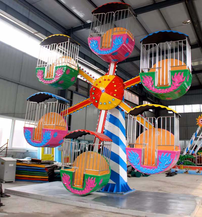 Double Direction Ferris Wheel — чудовий вибір для дитячих майданчиків, парків розваг і торгових центрів, де важливі безпека, компактність і яскравий дизайн.