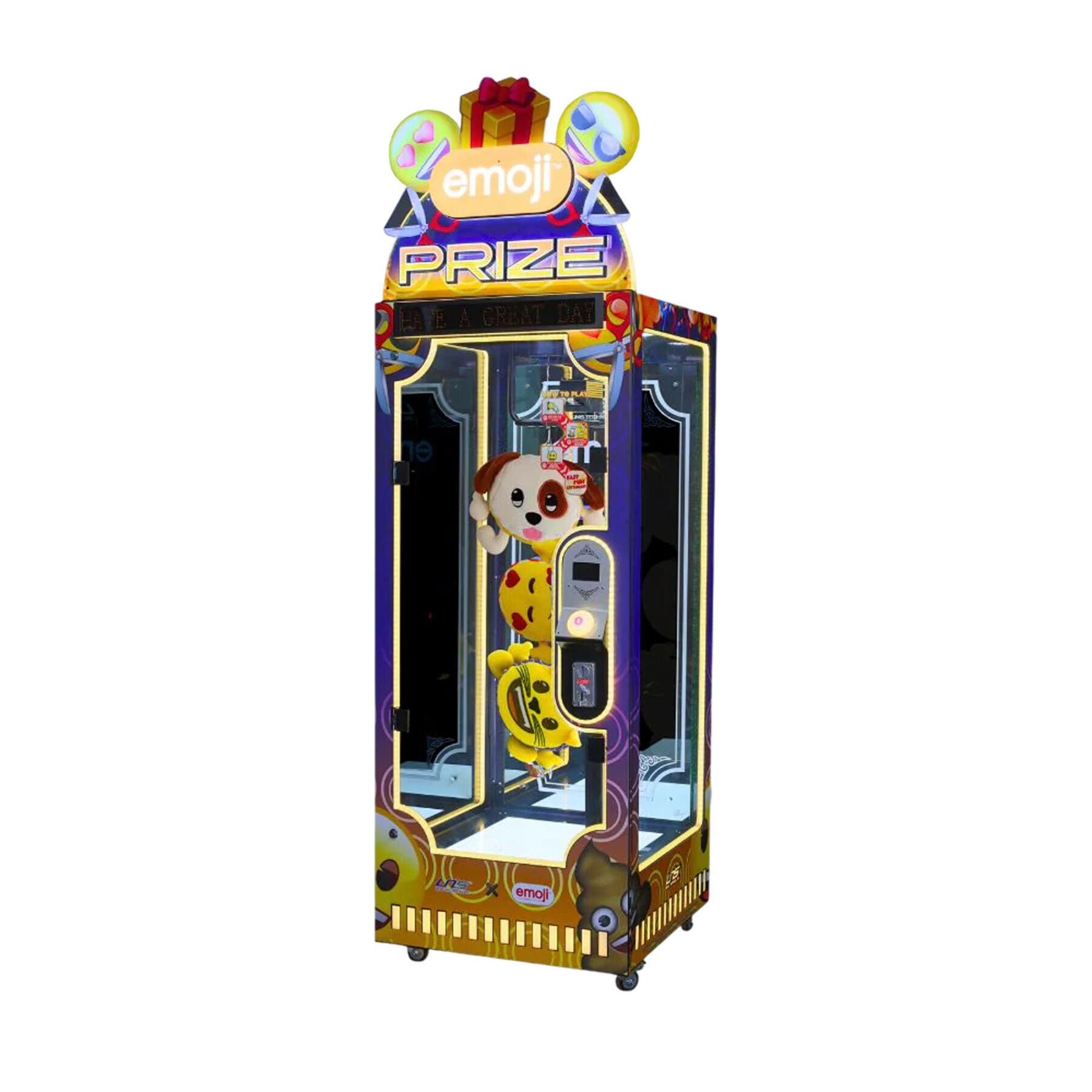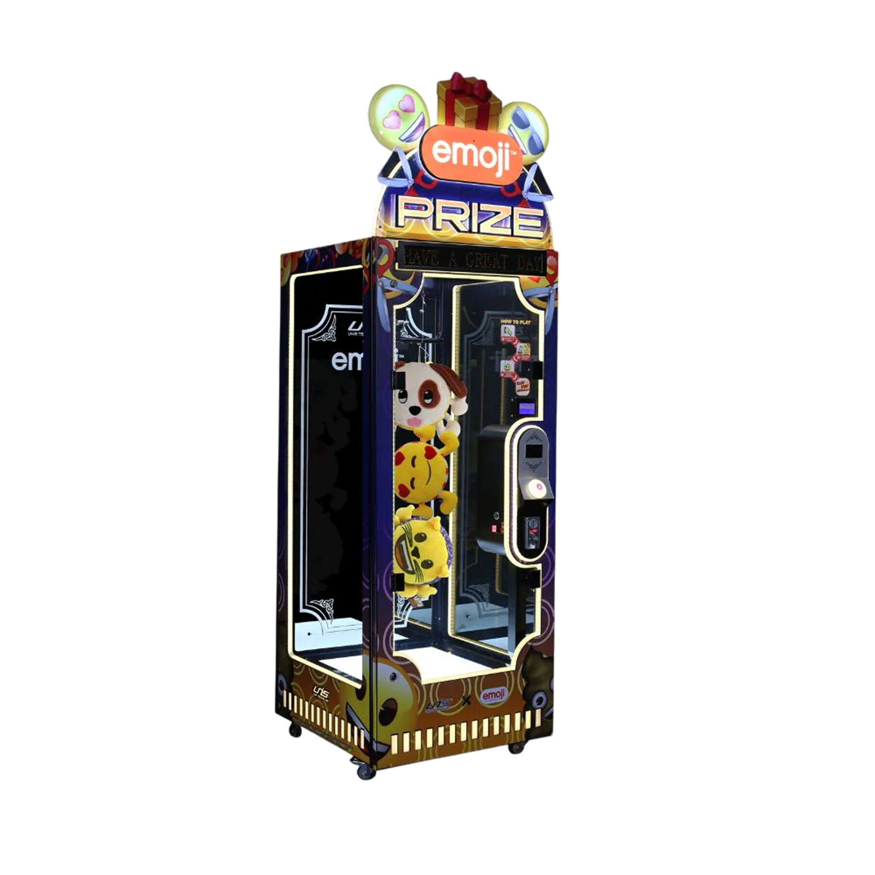 Emoji Prize — це сучасний аркадний кран-автомат, який поєднує класичну механіку claw-game із яскравим дизайном у стилі emoji™.