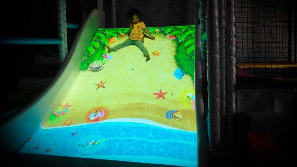 Інтерактивна гірка допомагає дітям насолоджуватися катанням із творчим відтінком. Діти ковзають вниз з барвистими інтерактивними анімаціями під чарівну музику. Система розпізнає рухи кожної людини і реагує захоплюючими спецефектами, які з’являються на поверхні слайдів.
