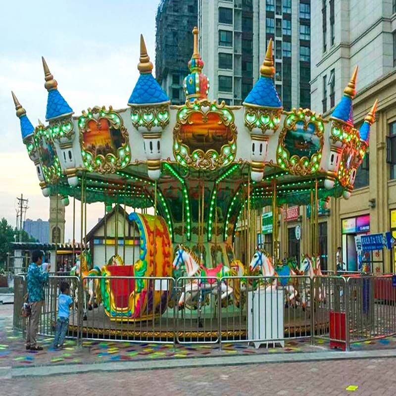 Карусель поєднує традиційний європейський дизайн із сучасними технологіями, створюючи атмосферу свята та ностальгії. Вона чудово підходить для парків розваг, тематичних парків, ярмарків та сімейних розважальних центрів.