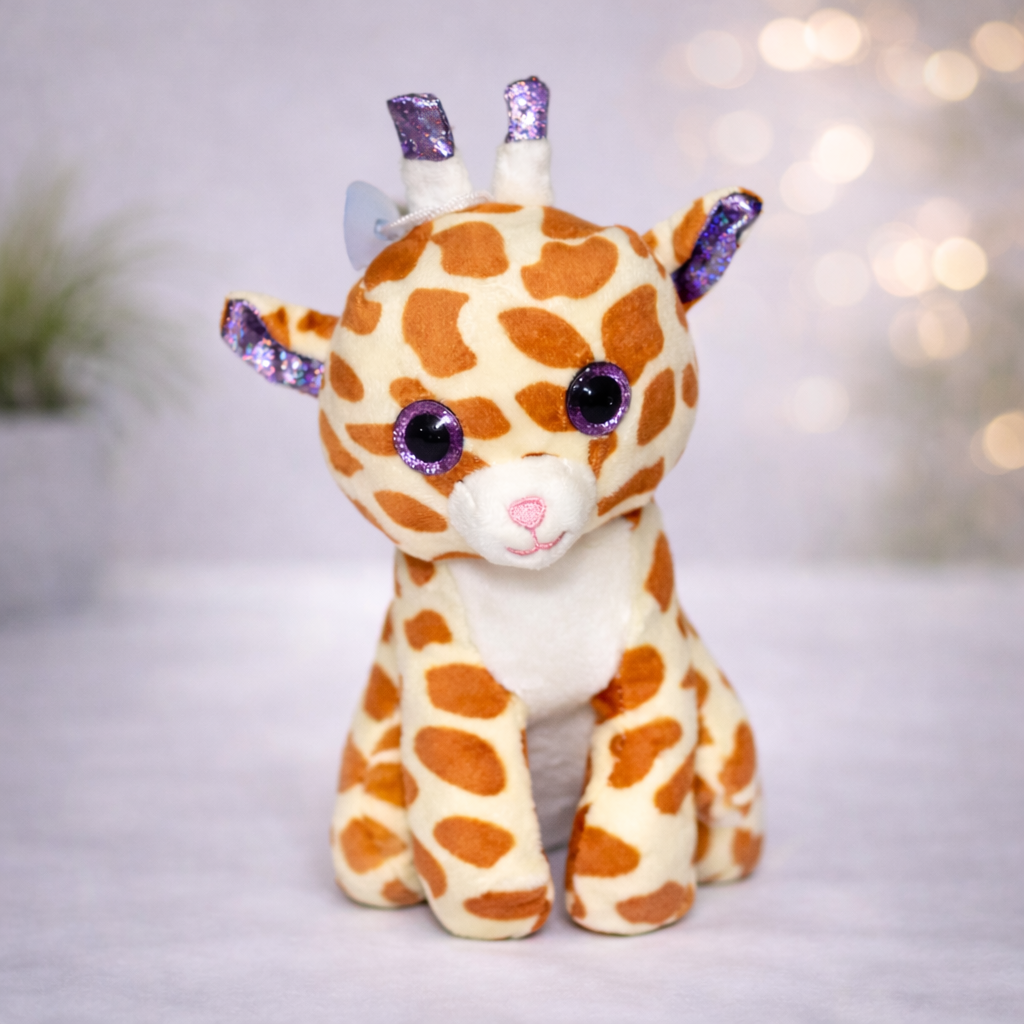 М’яка іграшка «Великоокий жираф» розміром 7 дюймів — це яскрава плюшева іграшка з великими виразними очима та милим дизайном. Незвичні пропорції й привабливе забарвлення роблять її помітною та бажаною для дітей.