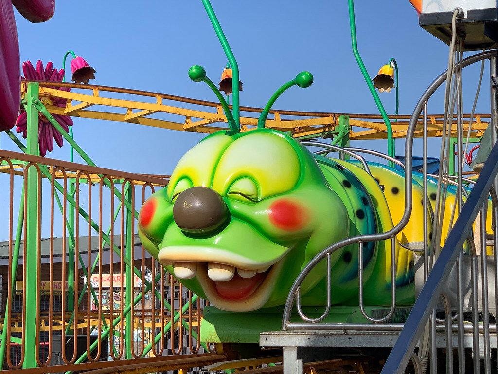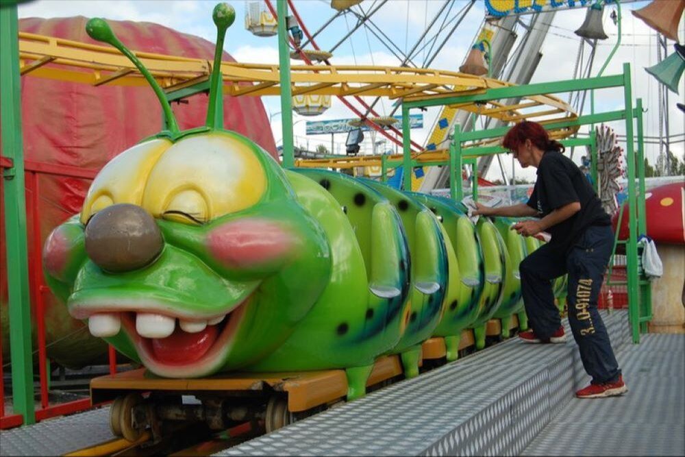 Caterpillar Roller Coaster — це сучасний дитячий атракціон, що рухається по змінній (комбінованій) трасі. Яскравий дизайн у формі гусениці складається з гармонійної композиції вагонів різного стилю, що робить аттракціон візуально привабливим і веселим.