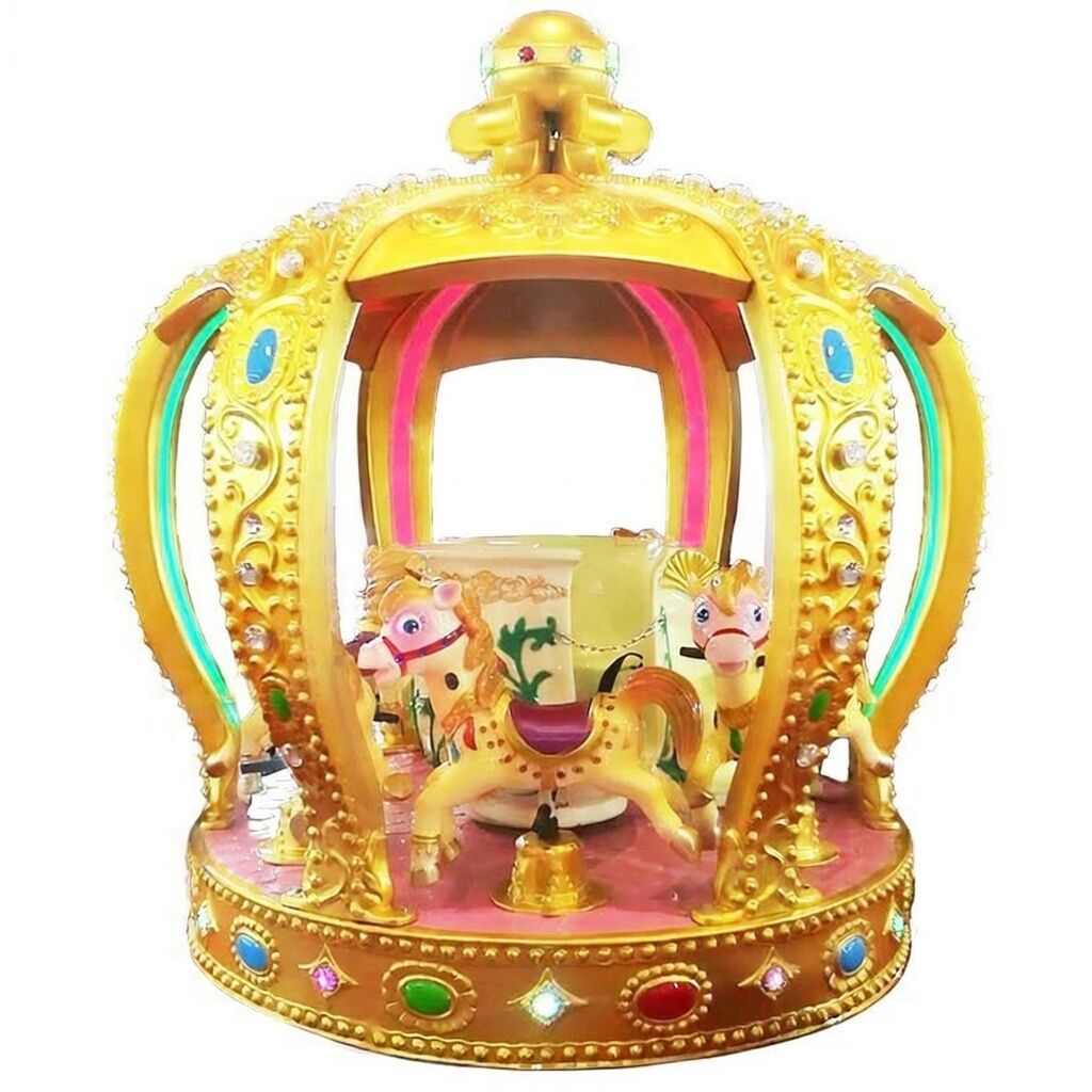 Luxury Royal Crown Carousel — це елегантний і привабливий атракціон преміум-класу, доступний безпосередньо від виробника. Карусель має розкішний дизайн: кожна фігурка коня виготовлена зі склопластику FRP, оснащена ефектним підсвічуванням, якісним музичним супроводом і зносостійким фарбуванням, яке не втрачає яскравості з часом.