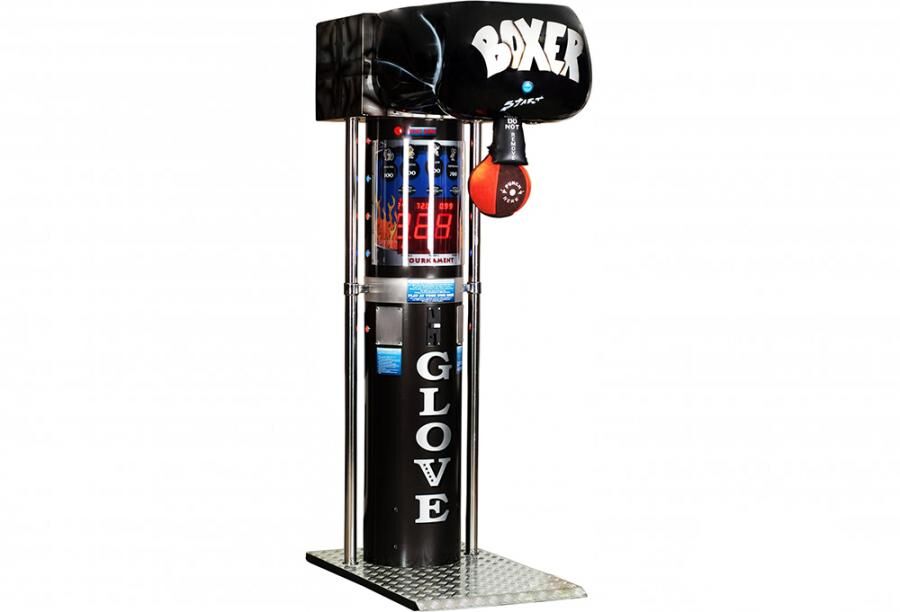Силомір BOXER GLOVE – це силомір унікальної форми у вигляді боксерської рукавички. Така форма апарату надає особливу атмосферу для гри в компанії друзів, який дозволяє грати 6 учасникам в одному змаганні, а оригінальне звуковий супровід після нанесення удару по груші дозволяє підняти собі і друзям гарний настрій. В апараті є додаткові освітлення по бокам боксера і вбудовані бічні труби з нержавіючої сталі. Є можливість програмувати монетоприймач. За допомогою яскравого і насиченого дисплея гравці мають можливість бачити поточний рахунок. Виробником даної моделі є польська компанія Kalkomat. Напруга живлення 220В, 50Гц. Стійкий корпус, надійні механічний частини силоміри.