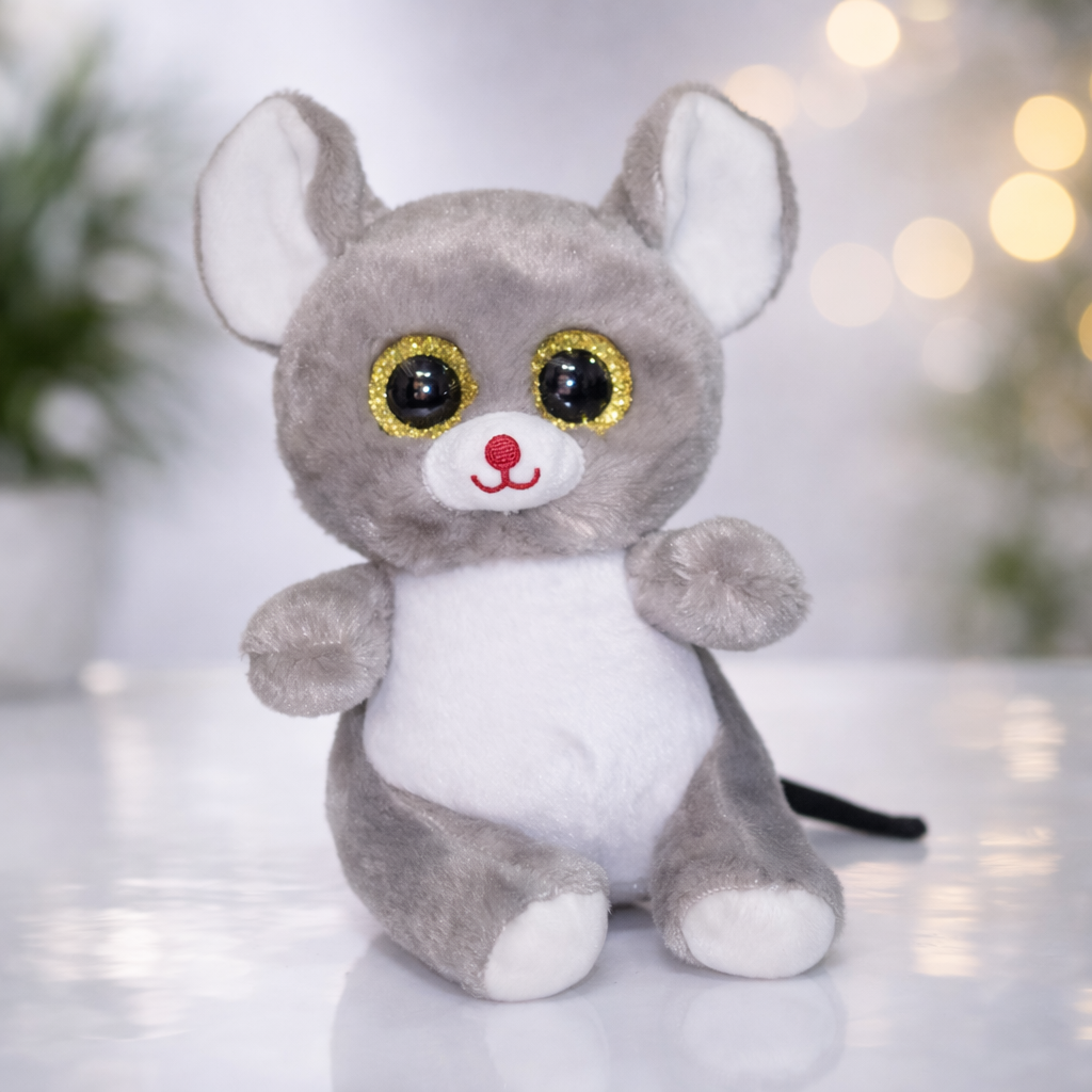 Великооке мишеня 8 дюймів — м’яка плюшева іграшка з великими блискучими очима та милим дизайном. Чудово підходить для дитячих ігор і як подарунок.